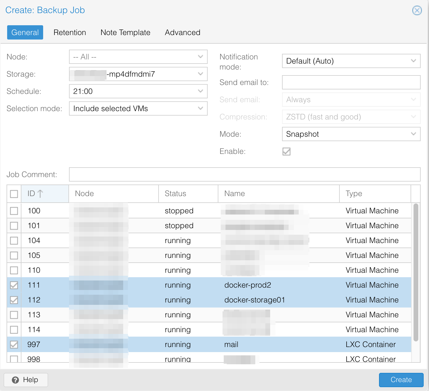 Proxmox VE dispose d’un planificateur avancé pour vos sauvegardes. Vous pouvez ajouter toutes vos machines virtuelles et conteneurs dans un ou plusieurs jobs programmés avec différentes rétentions, notes et limites de bande passante.